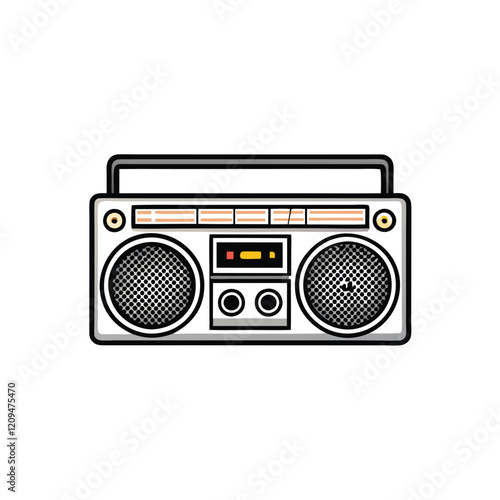 A stylized boombox with simplified lines, emphasizing its iconic shape and form. The design should have a retro aesthetic, capturing the essence of a vintage boombox.