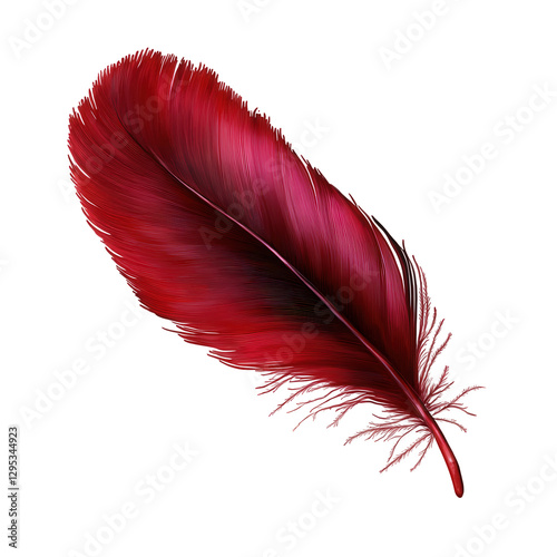 A stylized digital painting of a crimson feather, slightly ruffled texture, smooth and elegant form, transparent background, PNG