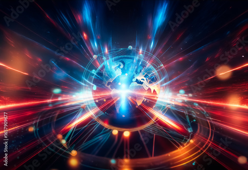 A stylized globe with a glowing network of lines and points, suggesting global connection and technology.