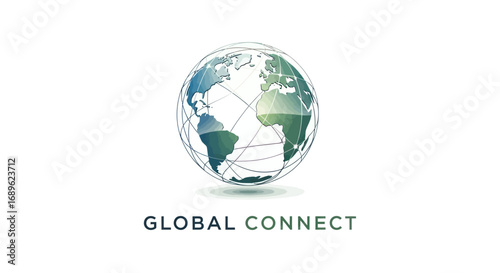 A stylized globe with interconnected lines representing global connectivity, with the text "GLOBAL CONNECT" beneath.