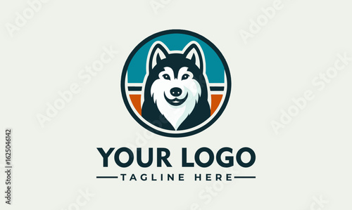 A stylized husky dog head within a circular emblem, designed as a logo.
