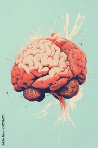A stylized illustration of a brain with vibrant colors and splashes, symbolizing creativity.