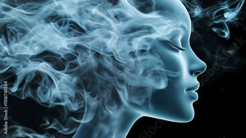A stylized representation of a human face formed from swirling smoke, evoking thoughts of mystique and ethereality. Ethereality. Illustration