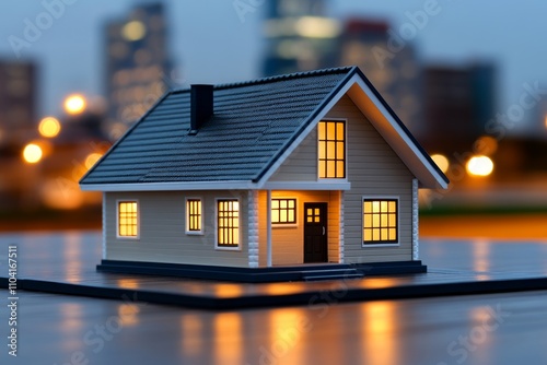 A stylized representation of a simple house layout with clean typography for room names, presented on a clean canvas