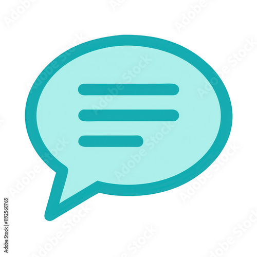 A stylized speech bubble icon in teal, featuring three horizontal lines representing text within it.