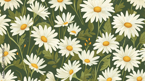 A sunlit meadow showcasing daisies arranged in a seamless 70s-inspired pattern, with each petal capturing the essence of the era.