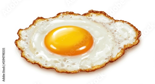A sunny side up egg with a bright yellow yolk and crispy edges on a white background illustration art isolated on white background