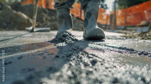 A supervisor inspects the work making sure that the concrete is being poured at the correct consistency.
