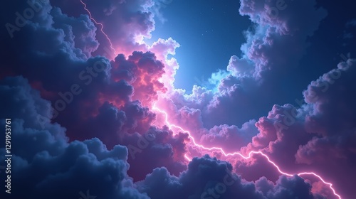A surreal galactic storm, ionized gas clouds churning with electric blue Magical Realism and violet lightning, celestial currents weaving through an infinite expanse of space.