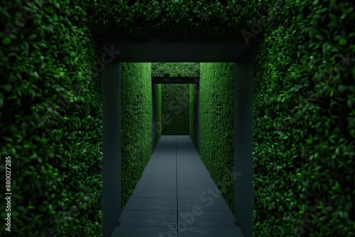 A surreal home where walls made of living plants breathe and grow, seamlessly merging the natural world with advanced technology with copy space, high tech