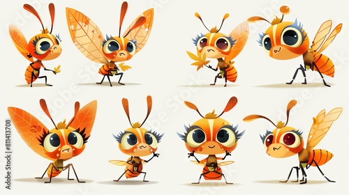 A swarm of cute and colorful bees, with big eyes and happy expressions
