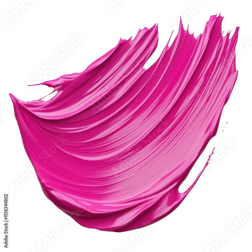 A sweeping stroke of vivid pink paint in varying shades and textures, isolated on a clean white background, showcasing artistic expression.