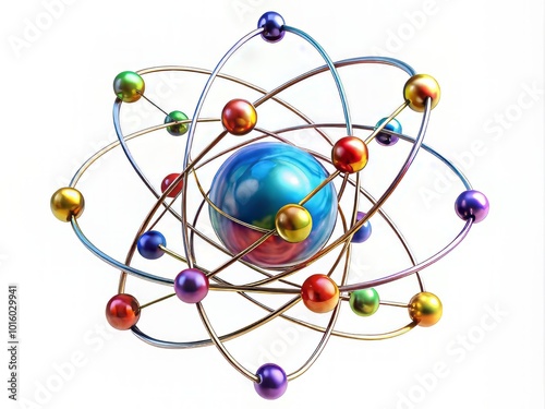 A sweeping visualization of an arsenic atom, featuring 33 electrons in a dynamic, infinite orbital rotation against a clean white background,