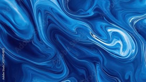 A swirling, abstract blue fluid design creates a modern and vibrant backdrop.