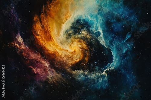 A swirling nebula of vibrant colors and stars in deep space, a cosmic dance of celestial matter.
