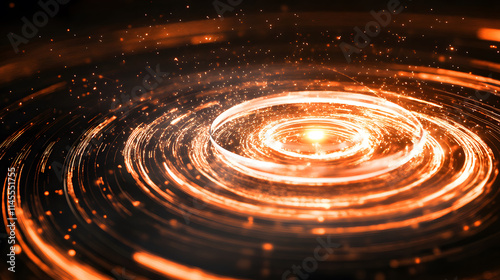 A swirling pattern of glowing orange light creates a mesmerizing effect, resembling cosmic energy or a vortex in motion