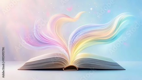 A swirling rainbow vortex emerging from an open book, symbolizing creativity and imagination unleashed