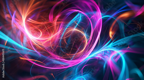 A swirling vortex of neon blue and pink lights creating an abstract, dynamic effect.