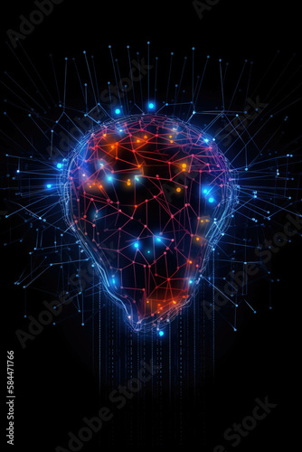 A symbol of a neural network outlined in LED lights scanning and yzing network traffic. . AI generation.