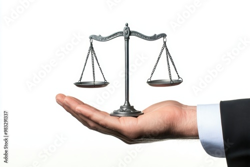 A symbolic representation of justice with a hand holding a balance scale, illustrating fairness and legal principles.
