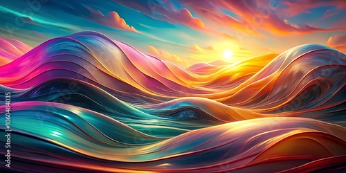 A symphony of color, undulating like liquid gold under a fiery sunset sky, captures the essence of a dreamscape where reality blurs into abstract beauty.