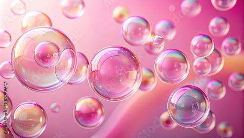 A symphony of iridescent orbs suspended in a soft pink ethereal expanse