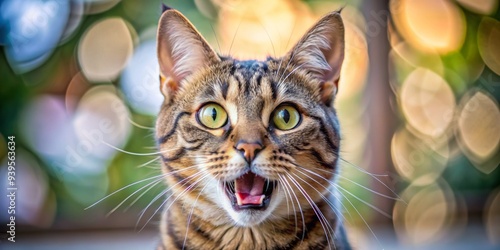 A Tabby Cat's Yawn with a Bokeh Background, photography, animal portrait, pet, cat , bokeh , animal