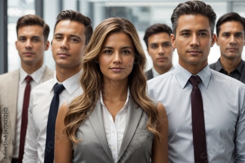 A team of business people take a photo together in the organization