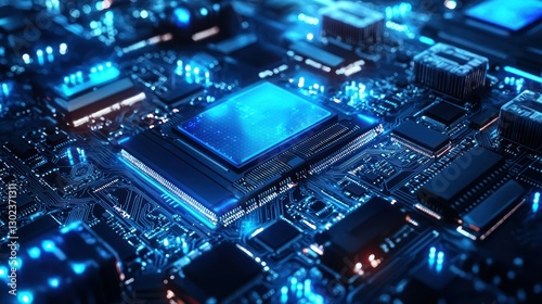 A team of IT professionals collaborating on a project with advanced tech equipment.