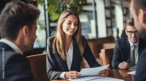 A team of young lawyers preparing for a court case in a law firm, with copy space
