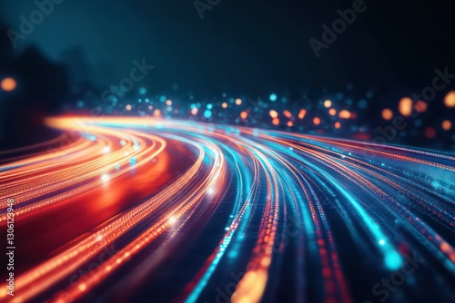 A tech-inspired image of light data lines racing across the scene, symbolizing the speed and efficiency of modern internet data transmission.