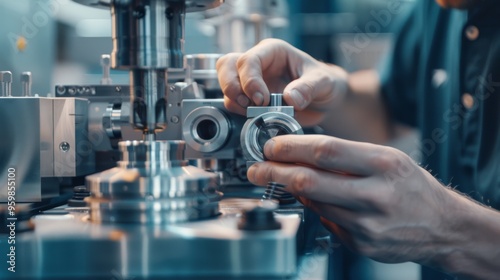 A technician adjusts precise components in a high-tech machine, emphasizing meticulous craftsmanship and advanced engineering skills.