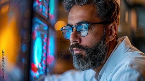 A Tech-Savvy Scientist In A Data Science Lab, Meticulously Analyzing Complex Big Data