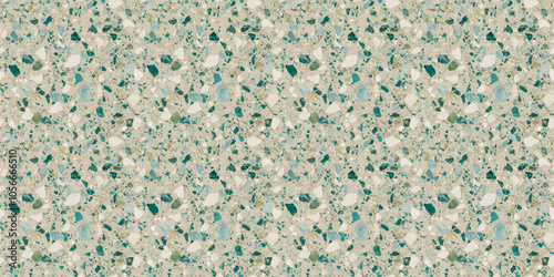A terrazzo surface featuring seafoam green, sky blue, and white fragments against a soft azure background