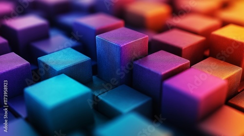 A textured abstract art of geometric cubes in vibrant colors, merging into a 3D mosaic design with depth and modern artistic appeal