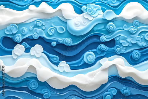 A textured abstract representation of ocean waves in various shades of blue and white.