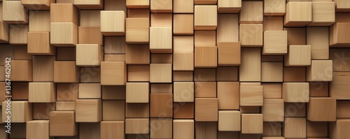 A textured surface composed of interlocking wooden blocks in various shades of light brown, creating a modern and artistic pattern.