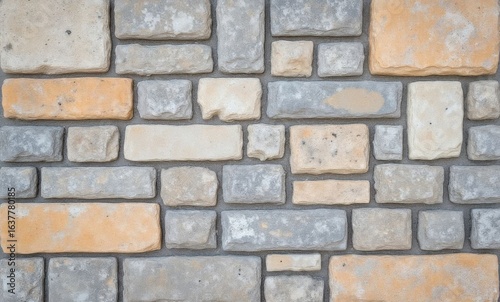A textured wall made of grey and beige stones, adding a rustic charm to any setting.