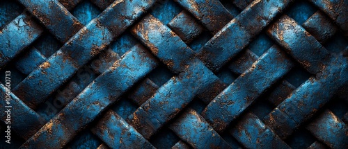 A textured, woven pattern of blue and rust-colored materials creating a striking visual.