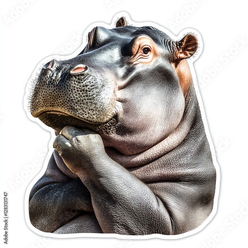 A thoughtful hippopotamus posing with a contemplative expression on its face.