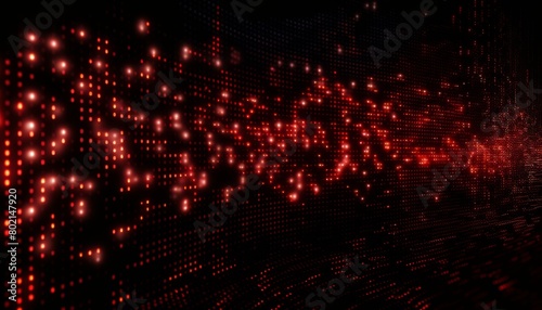 A three-dimensional grid of tiny red lights background.