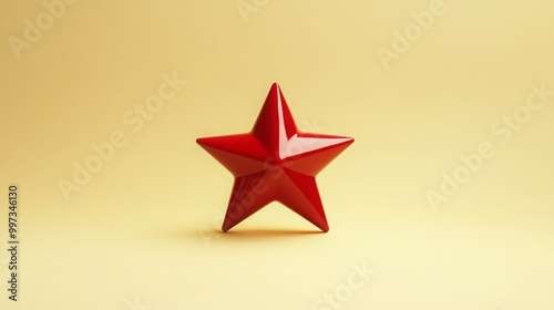A three-dimensional red star stands upright against a smooth yellow backdrop, emphasizing its vibrant color and geometric form, creating an eye-catching and minimalistic aesthetic.