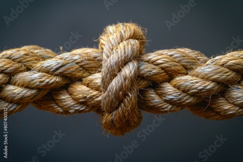 A tied knot on a rope. Business concept. Backdrop with selective focus and copy space