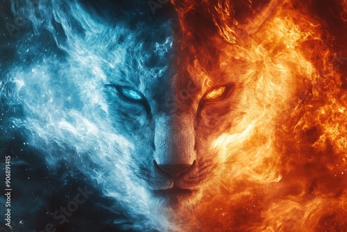 A Tiger's Face Divided by Fire and Ice