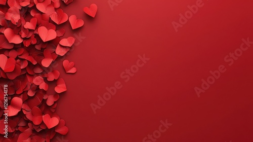 A Timeless Expression of Love: A Delicate Arrangement of Velvet Red Roses and Heart-Shaped Accents, Gracefully Cascading Against a Lush Crimson Background, Symbolizing Eternal Affection.