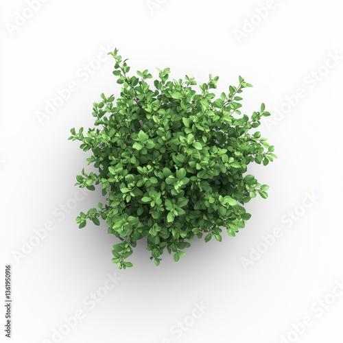 A top-down perspective of a fresh green fir tree spruce branch with needles, set against a white background