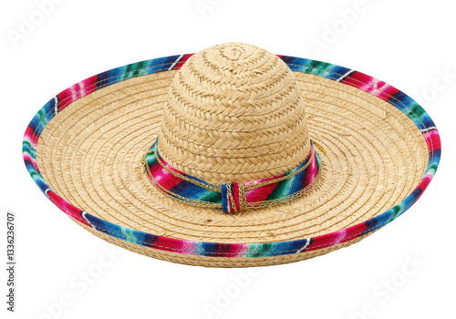 A traditional Mexican sombrero made of straw isolated on transparent background