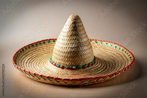 A Traditional Woven Straw Sombrero with Colorful Trim, a Festive Headpiece for Celebrations