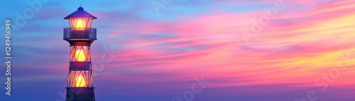 A tranquil sunset scene featuring a glowing lighthouse against a colorful sky, symbolizing guidance and hope, St David's Day
