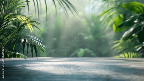A tranquil wooded landscape. Sunlight filters through the deep canopy of trees.